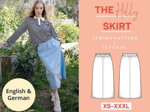 -15% Sewing pattern skirt in midi length, XS-XXXL, Easy with video tutorial
