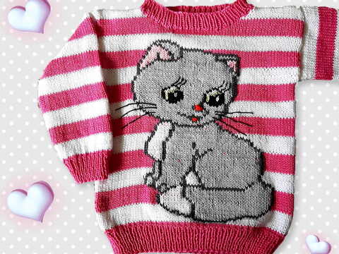 -25% Knitting Tutorial Pullover Cat in 2Sizes