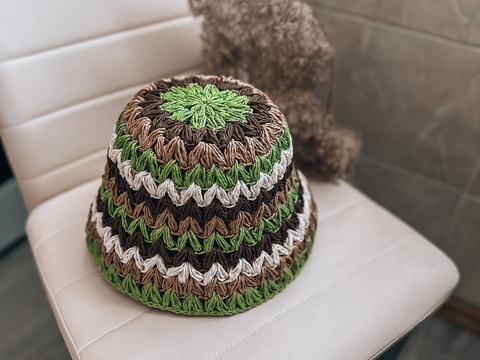 Crochet pattern raffia bucket hat PDF digital and video tutorial